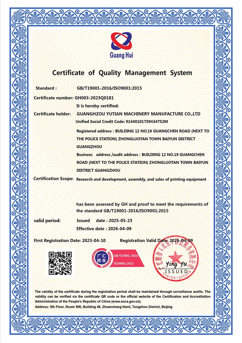 حقوق الطبع والنشر @ 2025 GUANGZHOU YUTIAN MACHINERY MANUFACTURING LTD. جميع الحقوق محفوظة.الشبكة المدعومة
